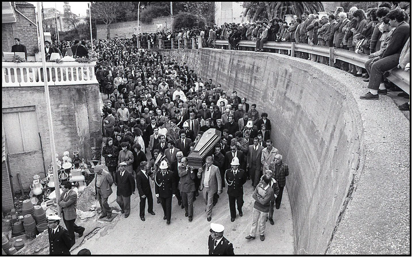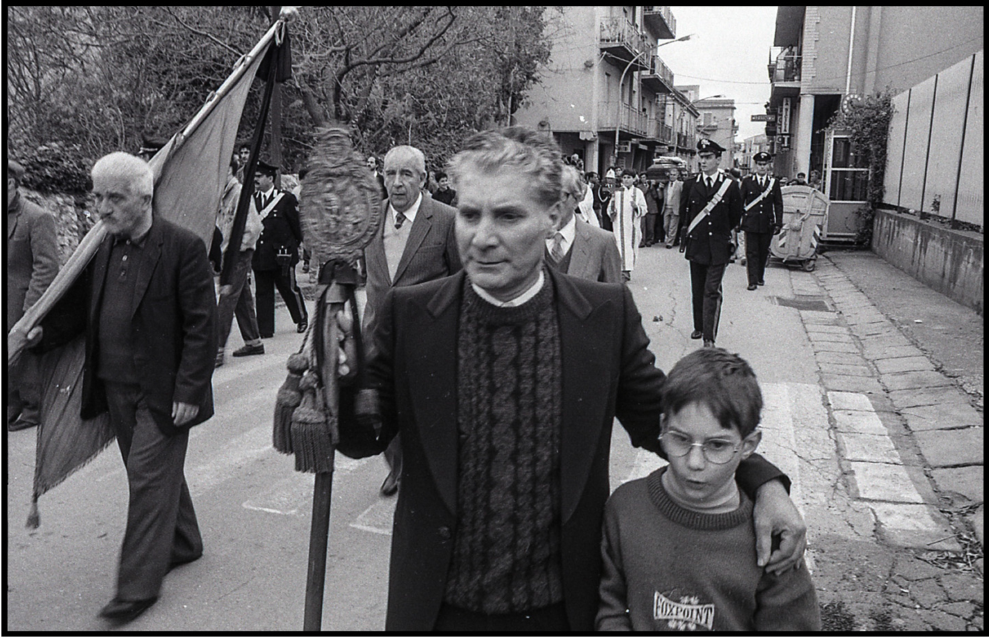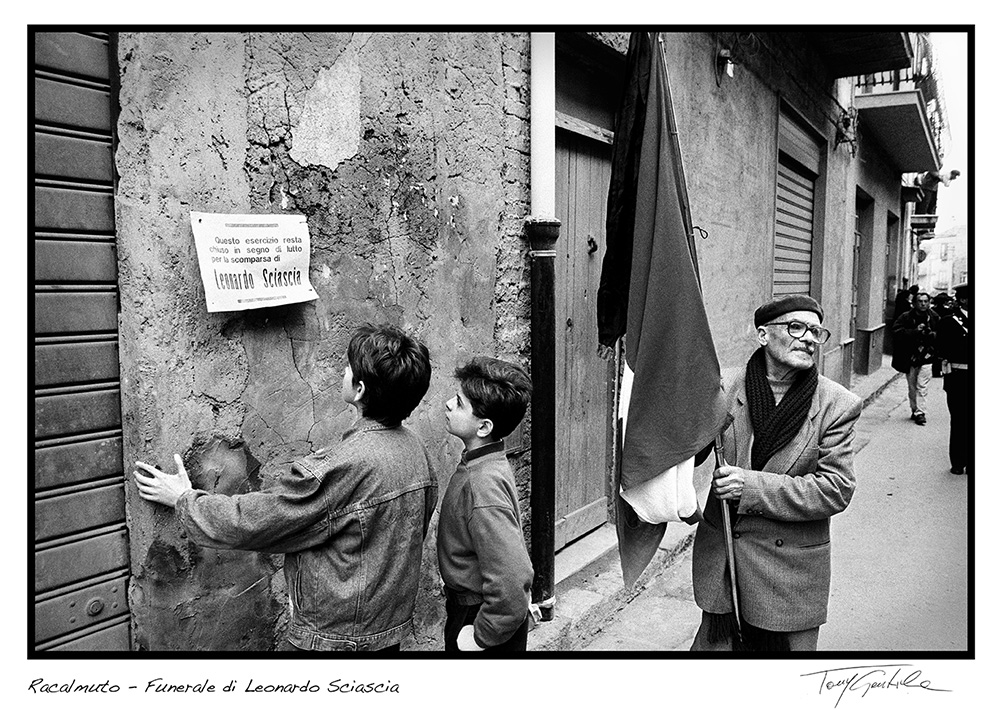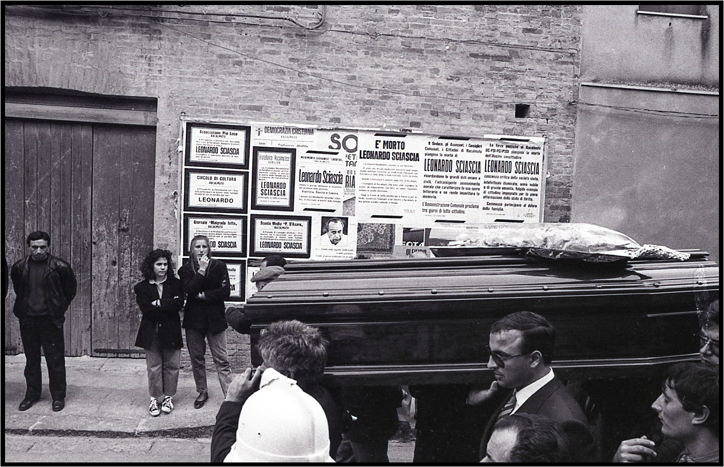 Era il 1989 e da pochissimo tempo avevo cominciato a fare questa professione. Una professione che allora, 30 anni fa, non avrei mai immaginato di poter esercitare per così tanto tempo e a certi livelli. Una delle prime storie grosse che mi trovai a raccontare fu proprio il funerale di Leonardo Sciascia, lo ricordo come se fosse ieri, rivedo le facce dei compaesani di Nanà, come lo chiamavano gli amici. Tutti presenti, dagli anziani del circolo degli Zolfatari ai bambini delle scuole elementari dove lui stesso era stato maestro. I nonni e i nipoti, gli studenti e i professori, gli amici e forse anche i nemici. Un lungo corteo silenzioso che attraversava le strade di Racalmuto, dalla chiesa di S. Maria del Monte al cimitero. La gente era appollaiata ad ogni angolo, arrampicata sui muri ricoperti dai manifesti a lutto e con il ritratto dello scrittore. Il feretro, preceduto dall’arciprete monsignor Puma anche lui caro amico del maestro Sciascia, era portato a spalla dagli amici più intimi. Tra questi uno in particolare mi aveva colpito, per la sua commozione, doveva essere veramente un suo carissimo amico. “Eppure quel signore l’ho già visto” pensavo “ha un viso conosciuto ma non ricordo bene” C’era tanta gente troppa confusione. Poi ad un tratto mi ricordai dove l’avevo visto. “Ho visto delle interviste in tv ma soprattutto ho visto le sue fotografie e con quelle foto ci sono anche cresciuto”. Ma sì, era lui, era Ferdinando Scianna, il fotografo che per tantissimi fotoreporter siciliani, e non solo, è stato un punto di riferimento. Proprio lui. Quella è stata la prima volta che ho visto di persona Scianna e poi da quel triste giorno mai più incontrato, mai più cercato, anche se avevo una foto che avrei voluto regalargli ma non ho mai avuto il coraggio di dargliela. Quella fotografia raccontava un momento troppo triste sicuramente per lui e la mia riservatezza non mi consentiva di avvicinarlo per parlargli di quell’immagine e di quel giorno. Ci son voluti 25 anni perché lo incontrassi personalmente, precisamente nel 2015 a Firenze per regalargli una copia del mio libro appena pubblicato. Anche questa volta ero emozionatissimo e mi tremava la mano al punto che la piccola dedica con firma che apposi sul libro somigliava di più ad un elettrocardiogramma. Da quel giorno ci siamo incontrati più volte, ha partecipato alla presentazione del mio libro, abbiamo fatto un talk e una mostra insieme e tra noi si è instaurato un rapporto molto simpatico basato su una naturale stima reciproca. Ma ancora oggi quella foto sta nel mio archivio, se ci riesco un giorno gliela regalerò.
